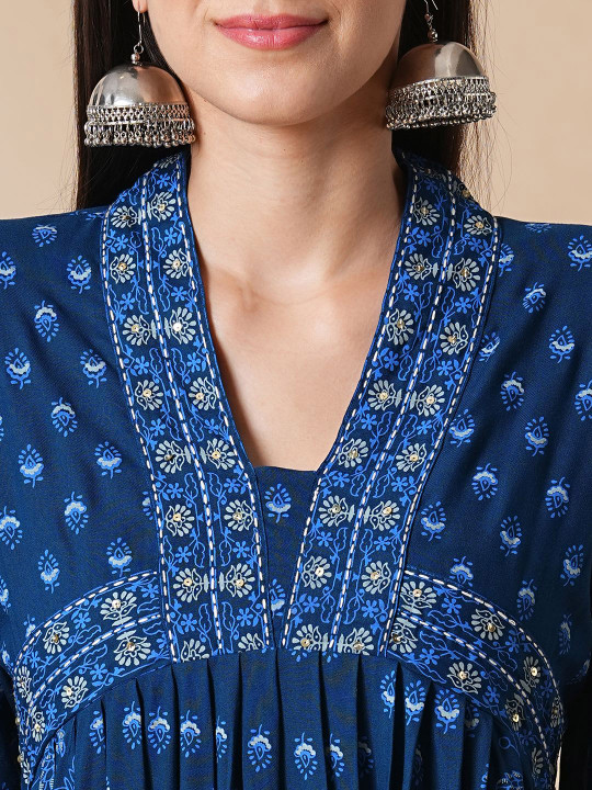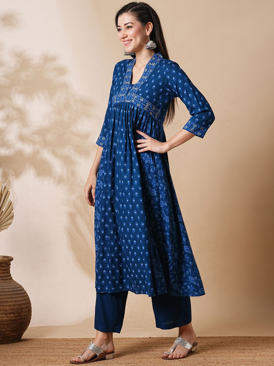 Be the first to review “Allover Printed Pleated & Panelled A-Line Kurta With Narrow Pants Workwear Set”