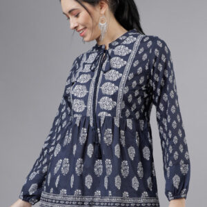 Vishudh Women Navy Blue & White Printed Tunic